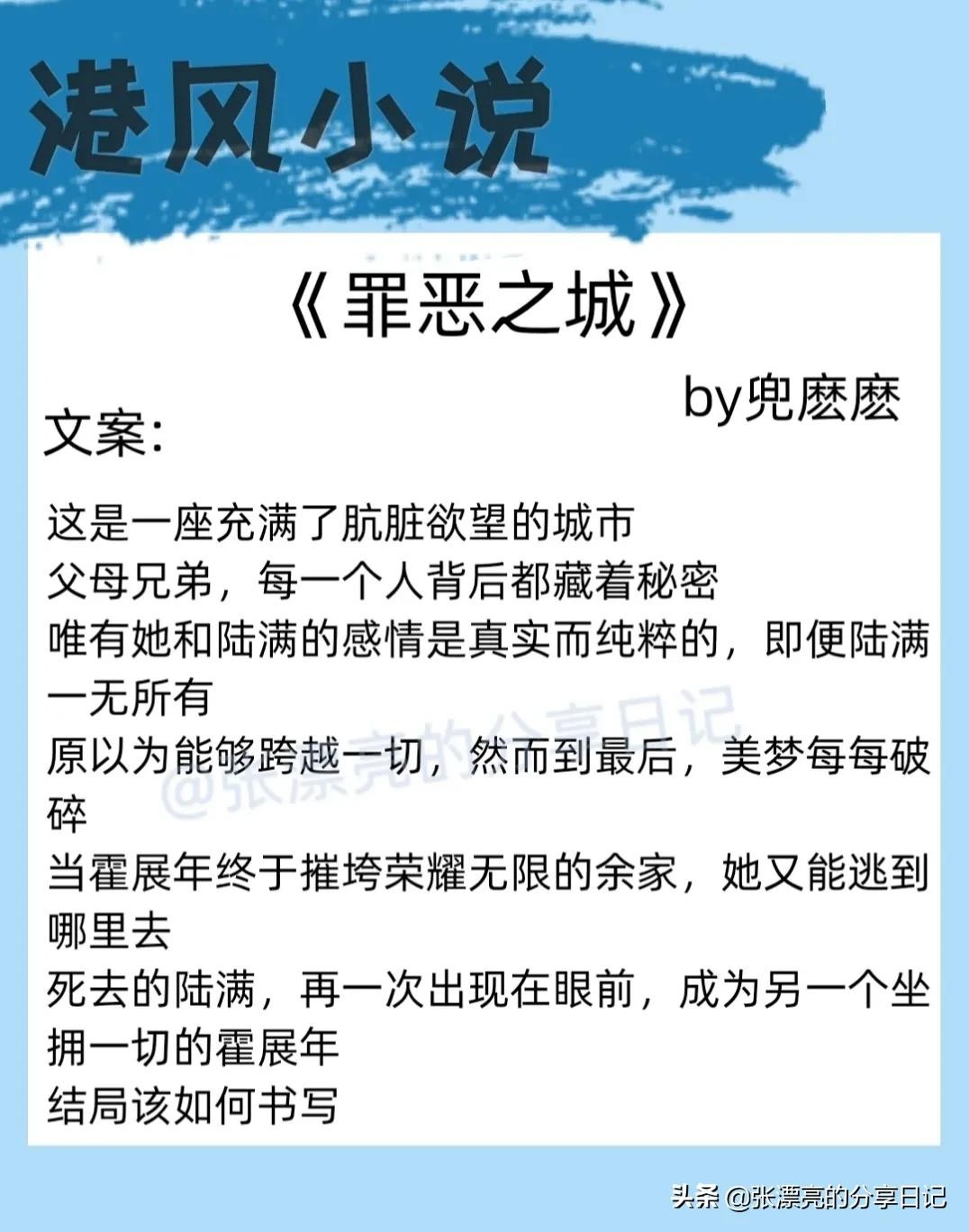 兜麽麽在写港风这类小说上可谓是如鱼得水,十分拿手。这本也算是非常经典的港风小说。黑道大佬男主x鬼马毒舌萝莉女主开篇就刺激,女主在阳台撞见男主调戏其他女人。总之,很经典,文笔也不错,故事比较吸引人,值得阅读。
