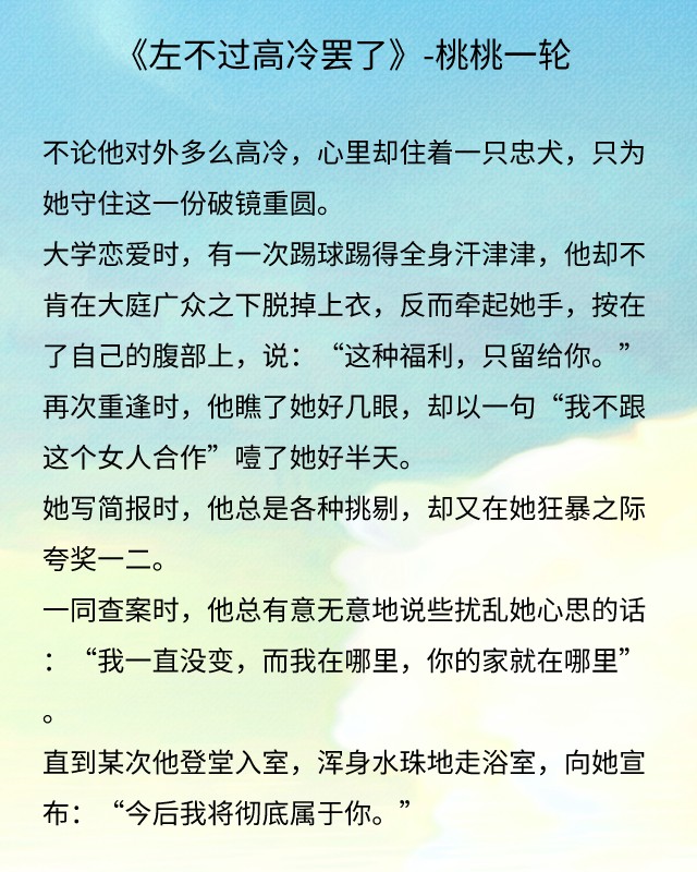 简评:刑侦界酷炫高冷专家和口是心非的高冷心理犯罪专家,两人都属于高智商冷静型,中途虽然有些波折,但整体上是甜的。