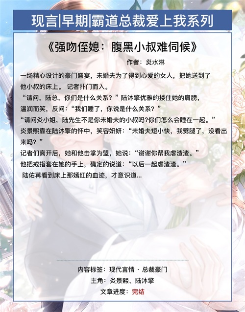第七本《强吻侄媳:腹黑小叔难伺候》作者:炎水淋【强力推荐!】