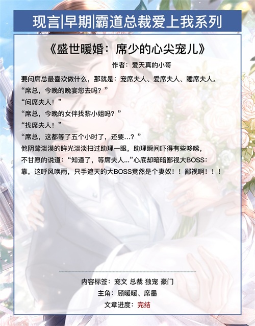 第十四本《盛世暖婚:席少的心尖宠儿》作者:爱天真的小哥【强力推荐!】