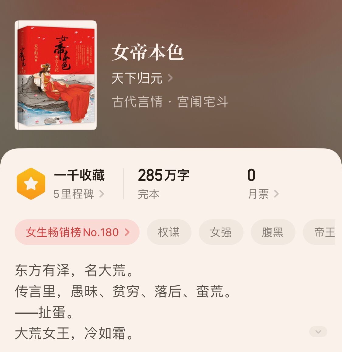 大家好,我是小猪猪,每天推荐优质小说。这几天一直在推古言,今天给大家推荐4本女尊文。