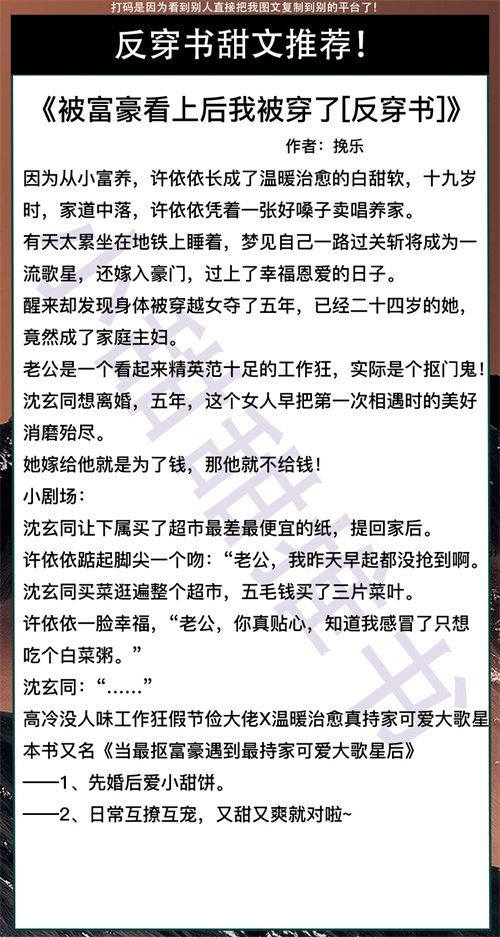 6本反穿书甜文!身体被穿越女夺了五年《被富豪看上后我被穿了》