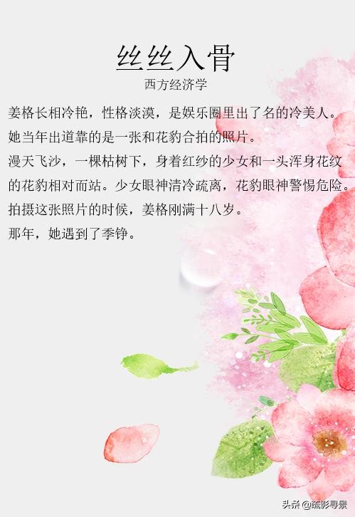 《丝丝入骨》温润治愈男主角vs又美又刚女明星,糙汉文里面的清流,女主一线明星,有心理疾病,男主有心理障碍,两人相互治愈的暖心爱情故事。