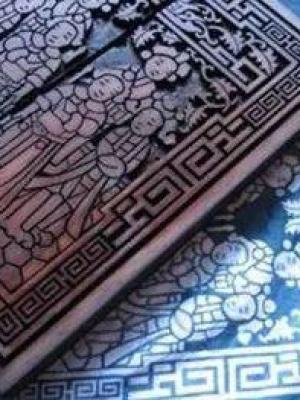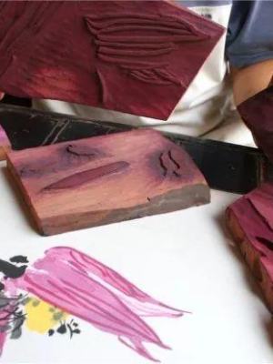 饾,本义堆砌。饾版拱花通过分割版,实现一张纸印刷不同颜色。