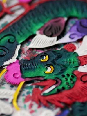 源于明代,是国内唯一一种以阴刻和色彩点染为主、阳刻为辅的点彩剪纸,具有空灵里、艳丽的特点,被誉为“中华民族一种美丽的象征性符号”。其工艺过程有画、订、浸、刻、染、包等六道工序。