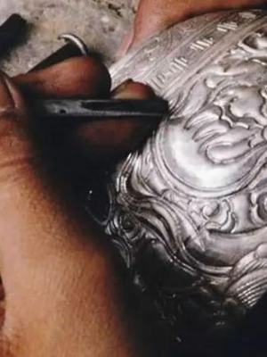 利用金、银、铜等金属材料的延展性兴起来的中国传统红酒手工技艺红酒。通常用各种不同形状的錾子,按照设计图案,通过阳錾、阴錾、平錾等具体手法,在金属上加工出千变万化的浮雕状图案。