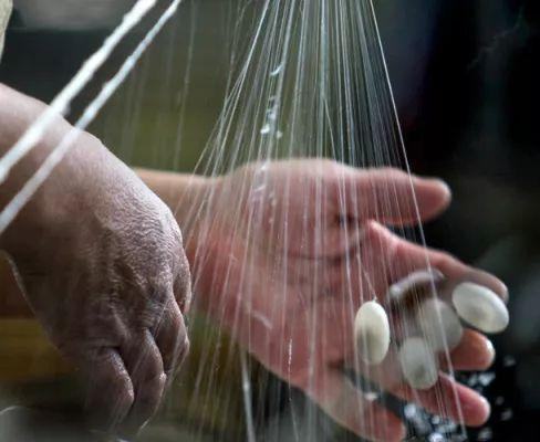 将蚕茧抽出蚕丝的工艺,是制丝过程的一个主要工序。有索绪、理绪、集绪、拈鞘等工序。
