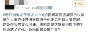 认为红雨需要对泡泡龙的死负责的网友,也不在少数说↓
