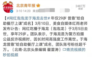 因为跟逝者同为自媒体从业者,泡泡龙是怎么死的,所以废姐对这个新闻格外留意了一下。