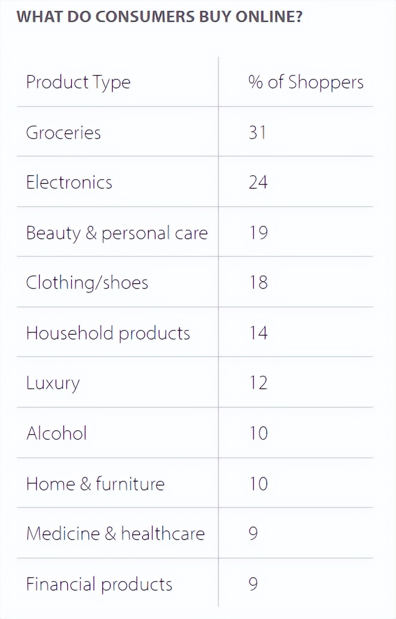 GWI消费者数据显示,日本线上消费者的购物类别主要集中于以下10种: