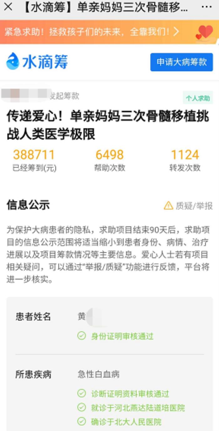 对于王先生的说法,黄女士给记者出示了两个众筹链接,分别是她第二次、第三次移植手术的众筹链接,众筹金额分别是80余万和30余万,黄女士告诉记者,从2025年1月起,丈夫就不再给她钱了,她后两次移植的费用都是靠的众筹。